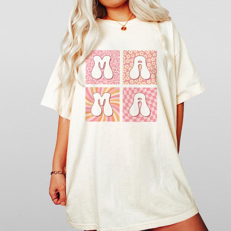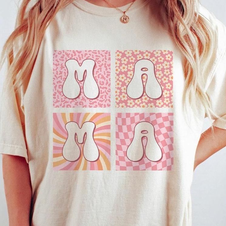 Retro Mom Comfort Colors Shirt, Retro Boho Mama T-Shirt, Checkered Mama Tee, Boho Floral Mama Shirt, Groovy Flower Mom Shirt, Mothers Day Gift For Mom