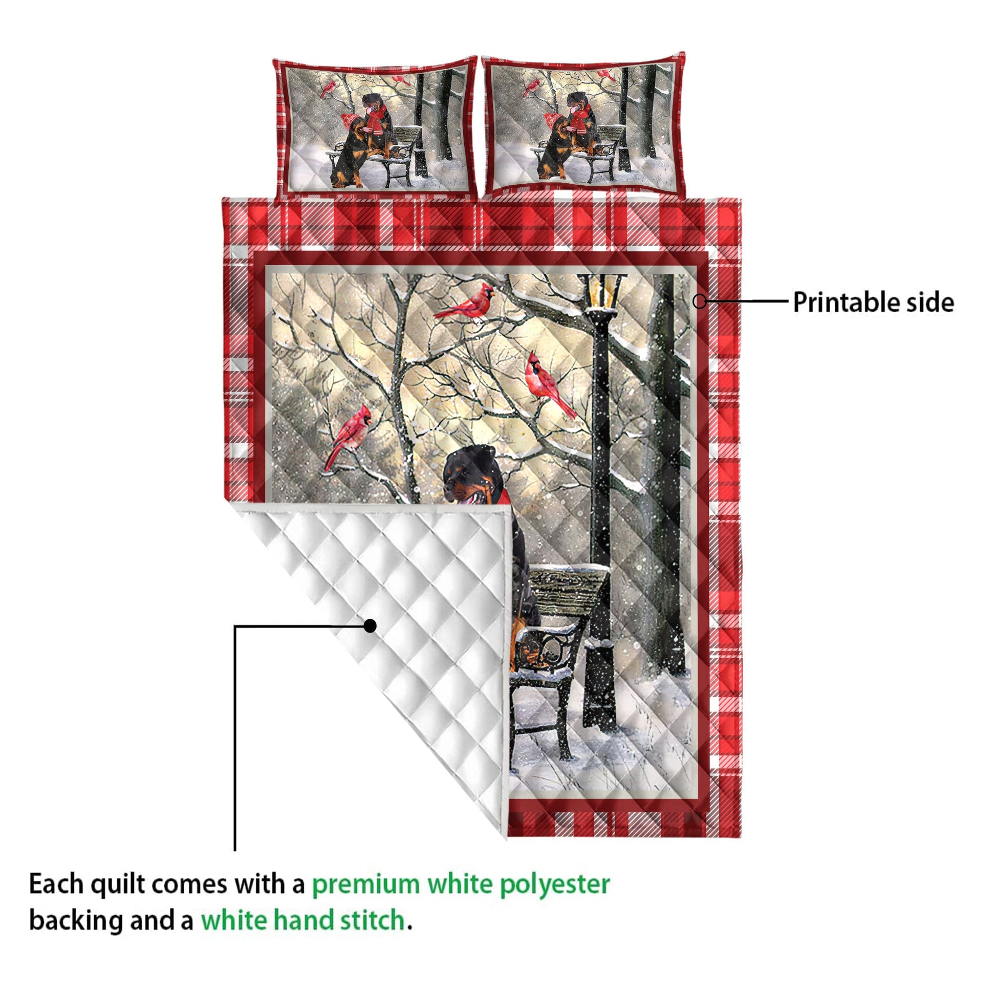 Rottweiler Quilt Set, Rottweiler Hellomas Snowflake Winter Park Cardinal Holiday Quilt Blanket With Pillowcases, Quilt Bedding Set, Christmas Gift