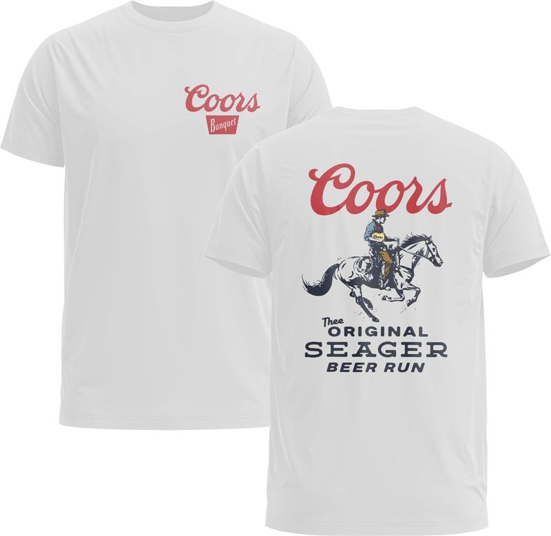 Seager X Coors Beer Run Tee, Western 90s Cowboy, Coors Wildwest Retro Rodeo Outfit - Gildan 5000 Graphic Shirt, Heavy Cotton, Menswear Man