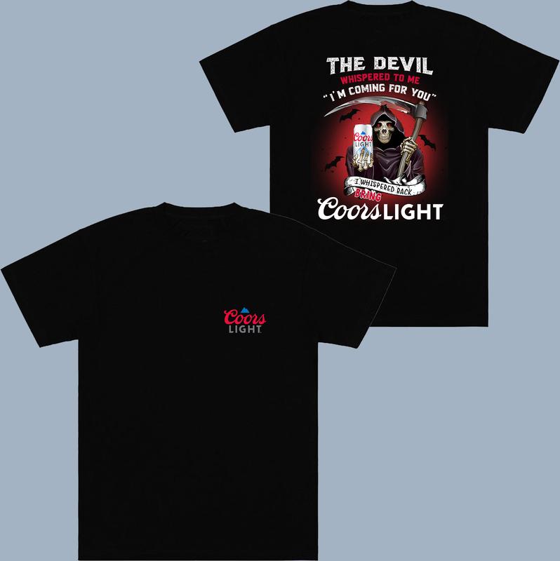 The Devil Whispered To Me I'm Coming For You I Whispered Back Bring Coors Light Tshirt - Celebrity Style - For Him And Her - Wide Size Selection - Mul