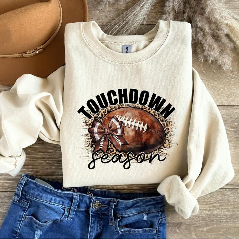 Touchdown Season Sweatshirt, Football Coquette Bow Tee, Football Season, Sports T-Shirt, Football Life, Cute Football Mom Tee, Sports Team Shirts, Ful