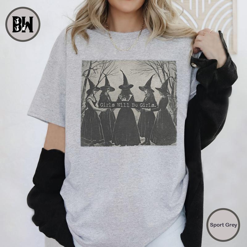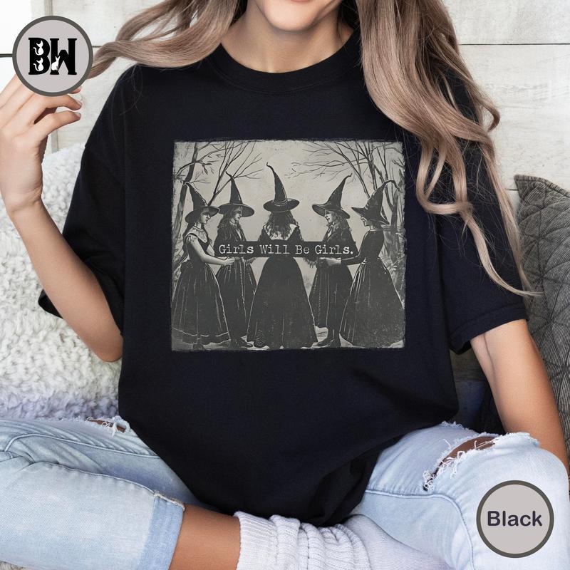 Vintage Girls Will Be Girls W.i.t.ch Shirt, Funny W.i.t.ch Vintage Shirt, Vintage Halloween Women Shirt Cotton Fabric