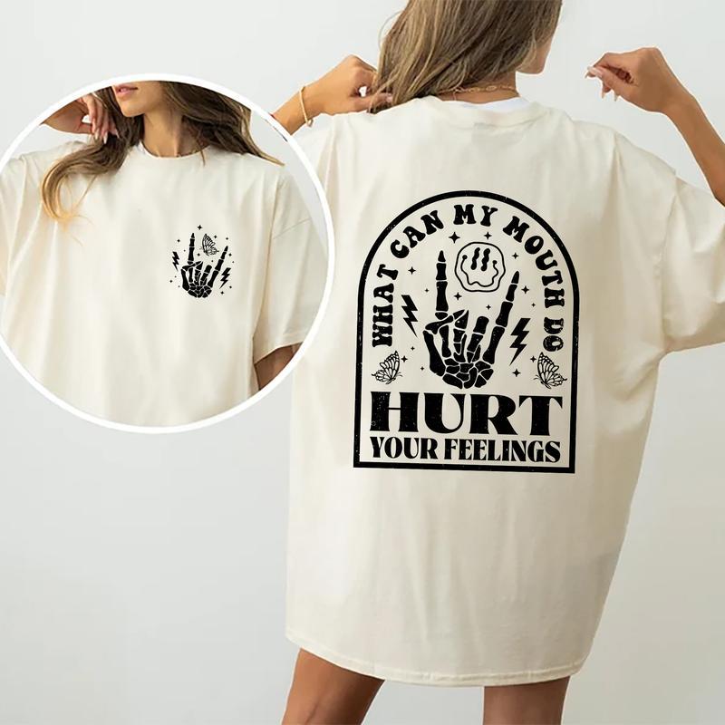 What Can My Mouth Do Hurt Your Feeling Shirt, Funny Sarcastic T-shirt, Trendy Funny Quote Graphic Printed Tee, Adult Humor Soft Fabric Short Sleeve Te