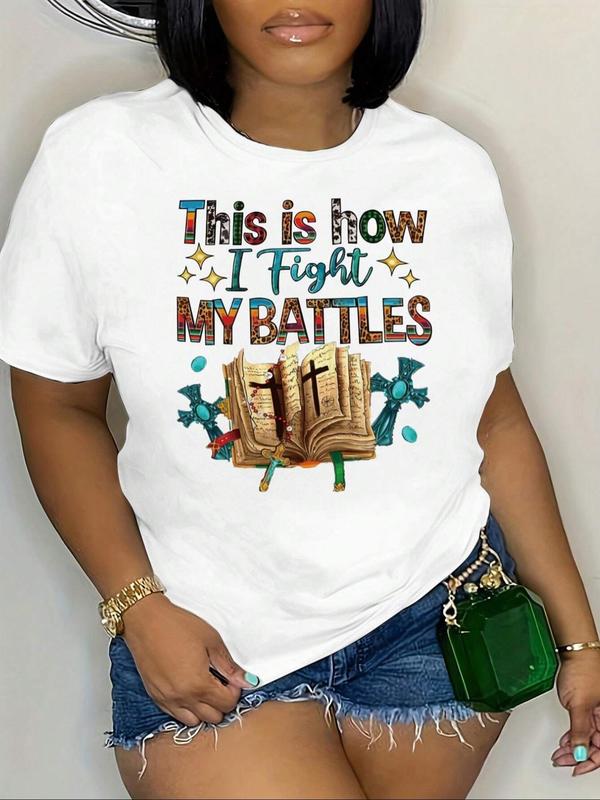 Women's Letter & Book Print Round Neck Tee, Casual Crew Neck Short Sleeve T-shirt, Ladies Summer Clothes for Daily Holiday Vacation Outdoor Wear