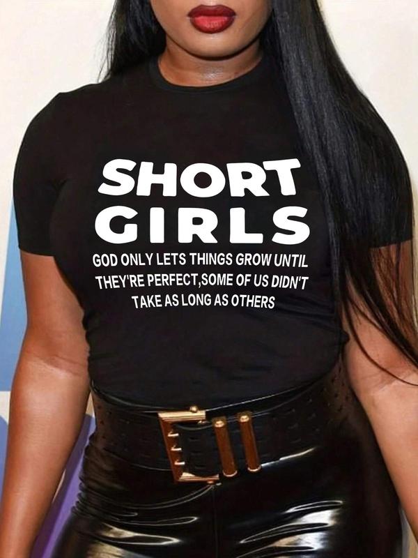 Women's Letter Print Round Neck Tee, Summer Clothes Women, Fashion Casual Crew Neck Short Sleeve T-shirt for Daily Holiday Vacation Outdoor Wear, Ladi