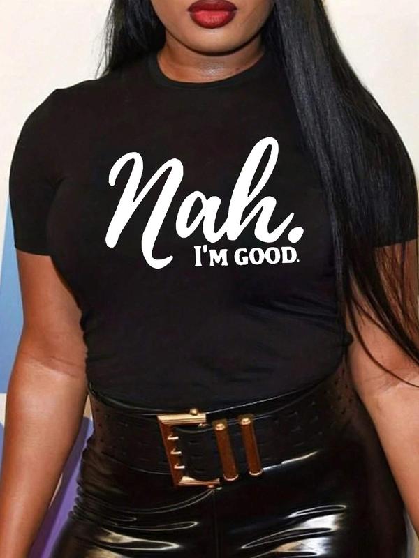 Women's Letter Print Round Neck Tee, Trendy Casual Crew Neck Short Sleeve T-Shirt, Graphic Tees, Summer Clothes Women, Ladies Summer Outfit