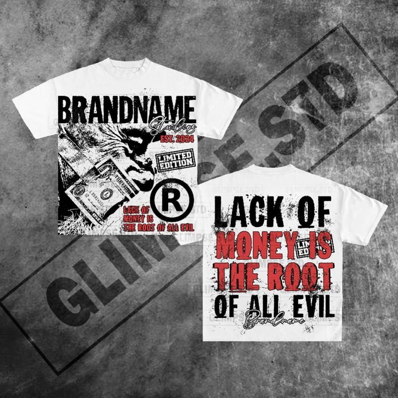 Y2K Graphic Lack Of Money Personalize Printed Tshirt Casual Cotton Crewneck Classic